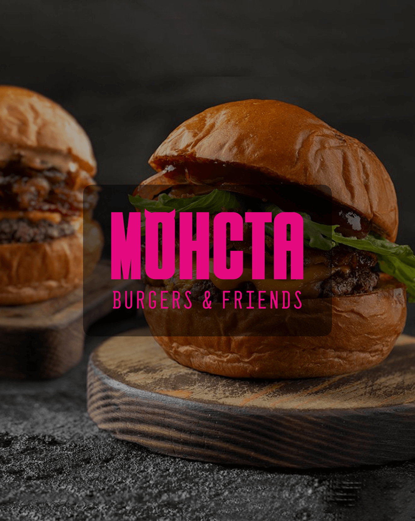 Фарш из мраморной говядины, луковый мармелад, бриошь, соус биг мак, сыр чеддер, бекон