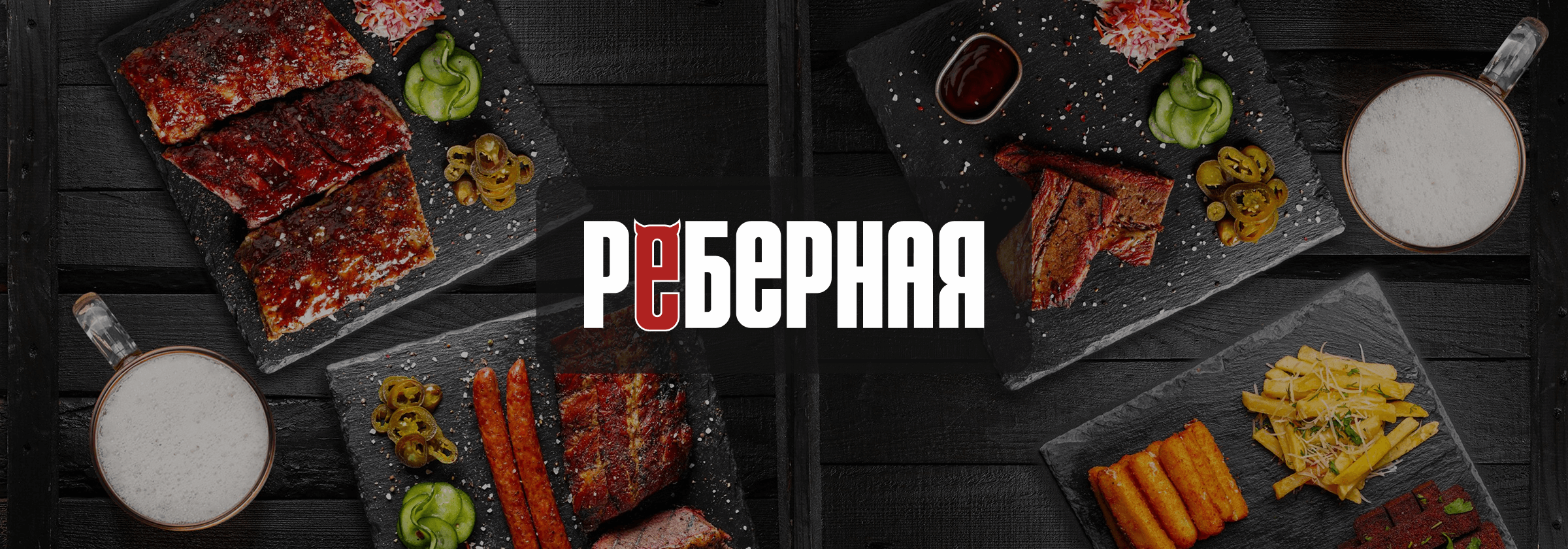 Ребро свиное томленое, беби картофель, овощи гриль, картофель фри, салат коул слоу, соус сырный, глазури: барбекю, чивас, медово-горчичная, пряная вишня, черный перец